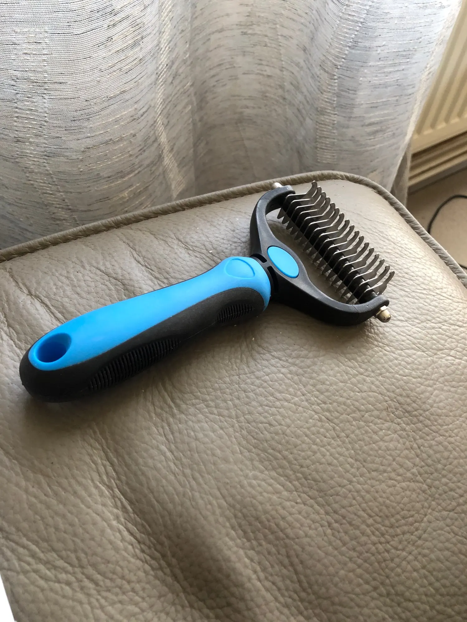 The comb is run along your dog's fur. The comb stops knotting and matting!