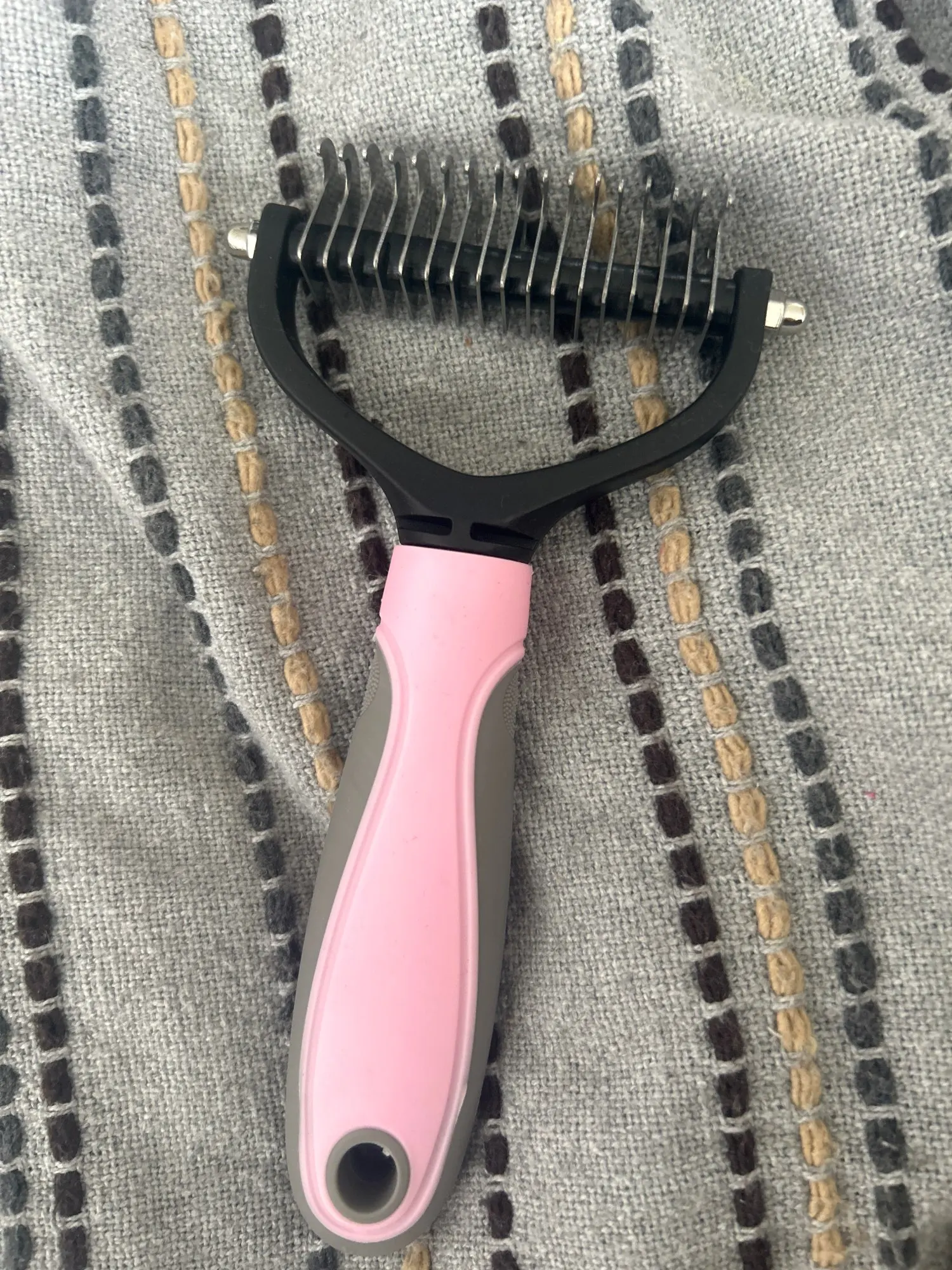 One thing that we love is how it is double-sided. One side is for thin fur and the other side is for pups with thicker fur!